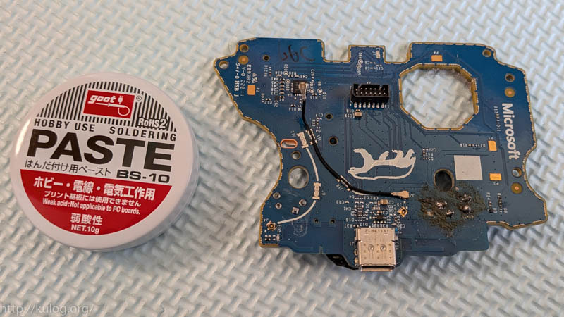 ここまでバラしました。今回ははんここまでバラしました。今回は、はんだ付け用(フラックス)ペーストを用いてみました。