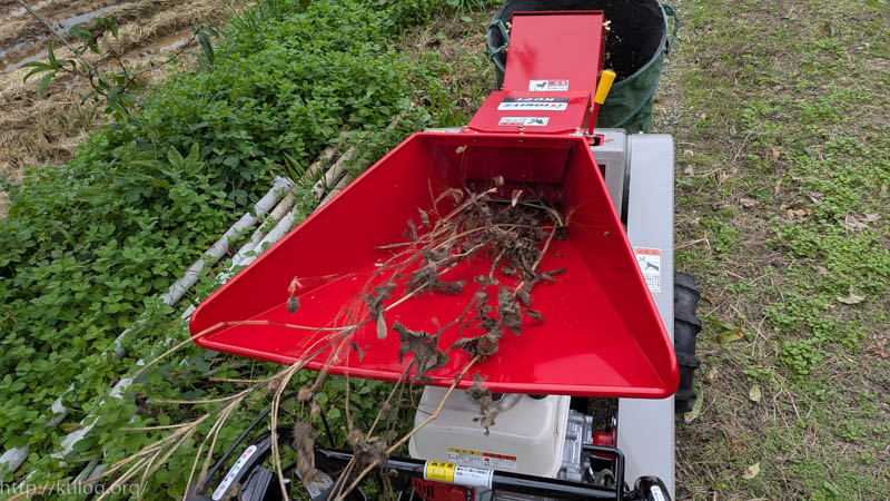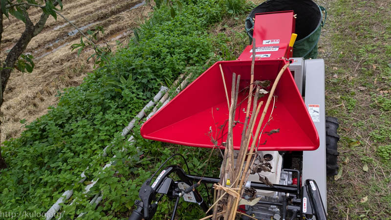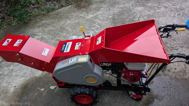 前から欲しい欲しいと思っていたウッドチッパーをようやく手に入れました! 購入したのは共立 KC71/4 で45mmまで対応で自走式です。