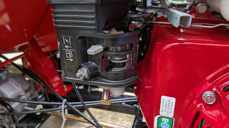 エンジンがかかったら、チョークを右にして開けましょう。エンジン音はとても静かですばらしいです。
