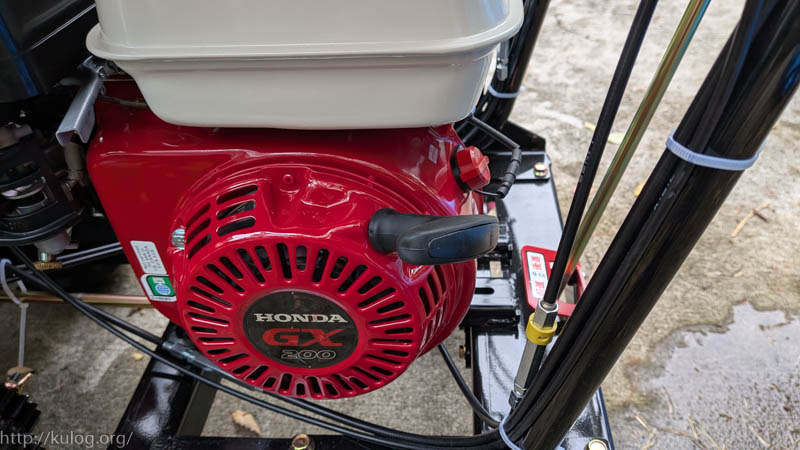 エンジンはホンダ GX200を使っています。国産エンジンは安心できます。